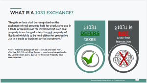 Data Source: Reference Guide to 1031 Exchanges, Courtesy of Ryan Vassar, Esq. Vice President at IPX 1031 What is a 1031 Exchange? “No gain or loss shall be recognized on the exchange of real property held for productive use in a trade or business or for investment if such real property is exchanged solely for […]