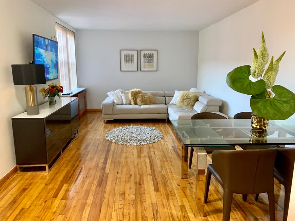 Bright and sunny 1 bedroom co-op in a super convenient location. This renovated unit has plenty of space in the combo living room and dining area. Stainless steel appliances, cedar cabinetry, granite countertops, and a beautifully tiled floor and backsplash make up the recently renovated kitchen. There are hardwood oak floors throughout the living room and king-sized bedroom. There’s also lots of storage available, with 4 closets in the unit and the option to rent additional storage in the building. Lastly, this location is very convenient, with tons of shopping, malls, restaurants, and transportation (subway E/M/R trains) all within 2 blocks distance.