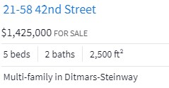We just wanted to let you know about a property that we just sold in Astoria. This one was a 2-Family located at 21-58 42nd Street (see link below for details). It was listed for $1,425,000, on the market for 42 days, and eventually sold for $1,350,000. The property was in Excellent condition.