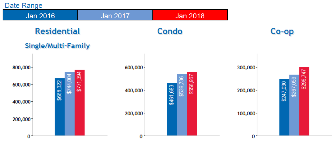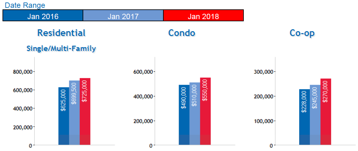 Specifically, our Queens real estate market report February 2018 shows that Queens residential home prices are UP 3.6%, Queens Condo prices are UP 7.8%, and Queens Coop prices are UP 10.2% compared to January of last year. Over the last 12 months, the median home price in Queens is up 12.9%.