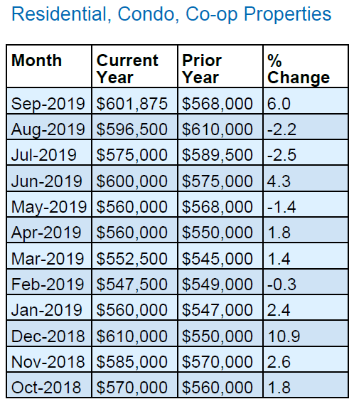 Specifically, the median home price for Residential homes was UP 1.4%, median home price for condos was UP 6.8%, and the median home price for coops was UP 2.5% compared to the same month last year.