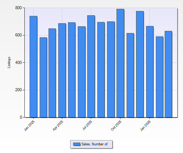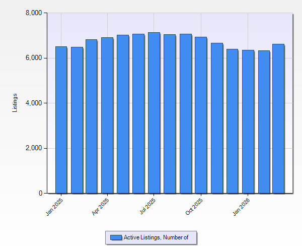 As for Active Listings, the One Key MLS reported a total of 6,625 active listings at the end of the 1st quarter 2026. This was UP 3.6% from last quarter and DOWN 2.9% compared to the same quarter last year. If you look at the chart above you can see that from September to February we have seen less and less inventory available for sale, however, March saw an uptick in active listings.