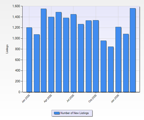 As for New Listings, the One Key MLS reported a total of 3,854 new listings in the 1st quarter 2026. That’s UP 22.6% from last quarter and UP 0.7% compared to the same quarter last year. If you look at the chart above, you can see that there has been a downward trend in new listings hitting the market over the last year, however, we had a big spike in March so we’ll see if that is the beginning of a new trend or not.