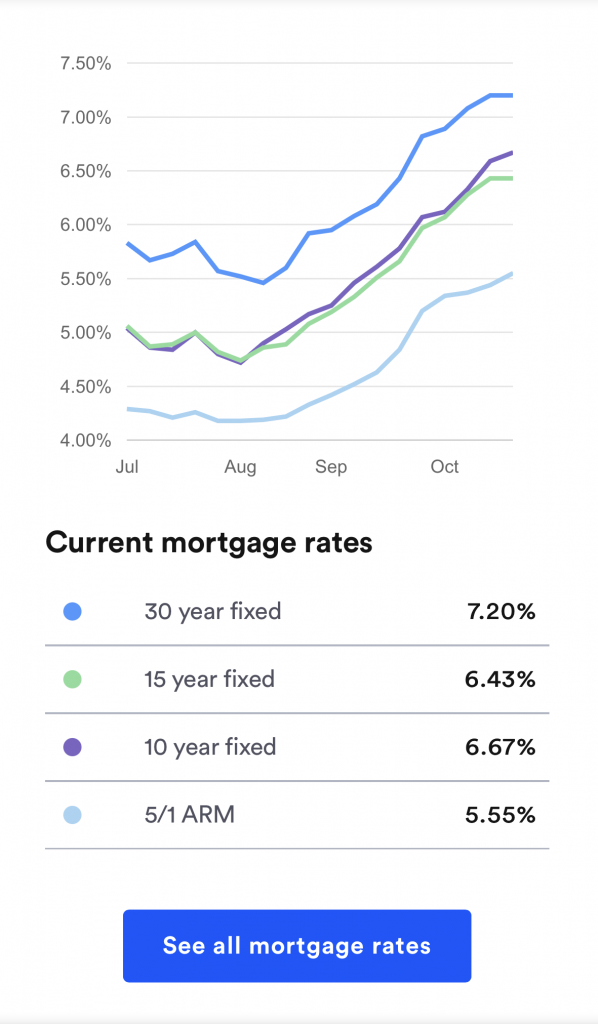 After rapidly rising in the early months of 2022, the 30-year fixed mortgage rate started to waver in June, approaching 6 percent, then settling into the 5s. That breather was short-lived, as rates resumed rising and topped 6 percent in September. This month, some offers have already broken through the 7 percent threshold.”