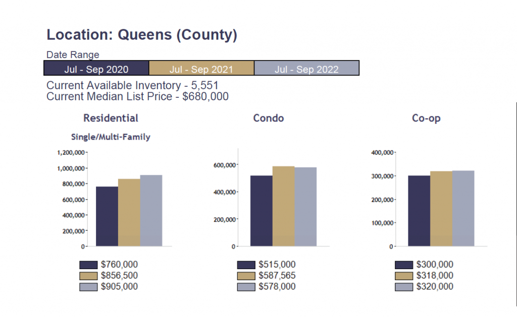Data Source: https://www.queenshometeam.com/wp-content/uploads/2022/10/Queens-Real-Estate-Market-Report_Q3_2022.pdf