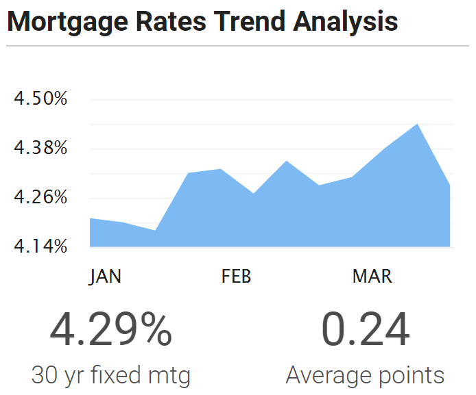 Mortgage rates decreased this week. The benchmark 30-year fixed mortgage rate fell 15 basis points to 4.29 percent. The benchmark 15-year fixed mortgage rate fell 15 basis points to 3.49 percent.