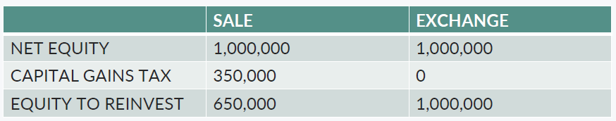 Example: Selling $1,000,000 property that has no debt and has been fully depreciated. Using an assumption of a 35% of total tax burden.