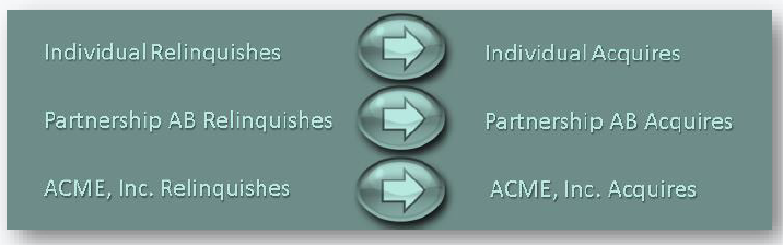 With a few exceptions in an exchange, title to the Replacement property is usually held in the same manner as title was held on the Relinquished property.