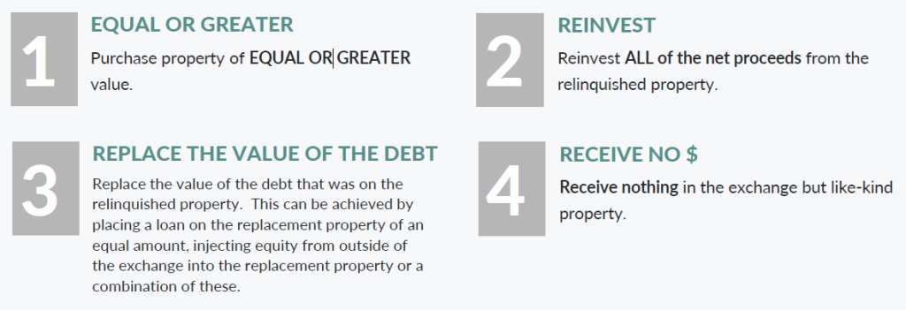 In order to obtain a deferral of the entire capital gain tax the Exchanger must: