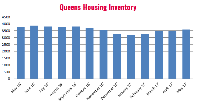 Currently month’s supply in Queens is at 5.4 months. This is higher than April’s 5.1 months, which was higher than March’s 4.9 months, which was higher than February’s 4.3 months, which was the same as January’s 4.3 months. Month’s supply is the number that measures supply and demand in our industry, and the fact that it has been slowly rising every month this year is very interesting. Rule of thumb is month’s supply over 6 months = Buyer’s Market, Under 6 months = Seller’s Market, and 5-6 months = Balanced Market. So, as you can see we are still in a seller’s market, however, it does seem to be balancing out a bit. It will be interesting to see where it goes during the next few months and throughout the year. In our opinion, it will most likely continue to feel like a seller’s market until month’s supply reaches 7-8 months.